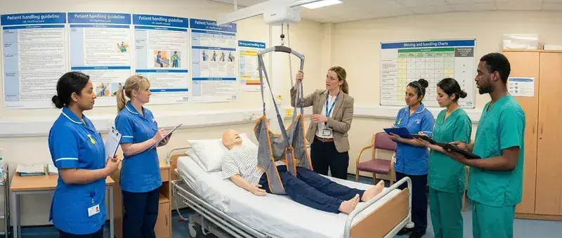 Patient handling training in the UK is governed by the Manual Handling Operations Regulations 1992 (as amended 2002), the Health and Safety at Work Act 1974, the Management of Health and Safety at Work Regulations 1999, and the Lifting Operations and Lifting Equipment Regulations 1998 (LOLER) for hoists and slings. The Care Quality Commission (CQC) also inspects care providers against safe moving and handling standards. NHS trusts and care providers must ensure all staff who move patients are trained and assessed as competent.Duration